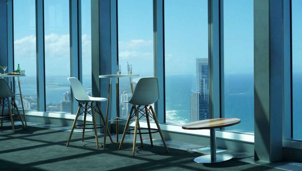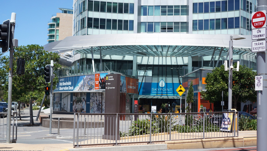 서퍼스 파라다이스 일대에서는 어디서나 전망대가 있는 Q1빌딩이 보인다. 예약을 하지 않고 일단 찾아갔다. 그래도 골드코스트에서 가장 유명한 관광포인트인데 좀 기다릴 각오를 했다. ($27/성인 1인 입장권) 그런데 입구부터 한산해서 바로 티켓을 사고 엘리베이터를 탔다. 얼마 전 서울의 롯데타워 전망대에 다녀왔던 터라 그 비슷한 것(혼을 쏙 빼놓는 영상)을 기대했는데, 그냥 천장이 보이는 평범한(그렇지만 빠른) 엘리베이터였다.