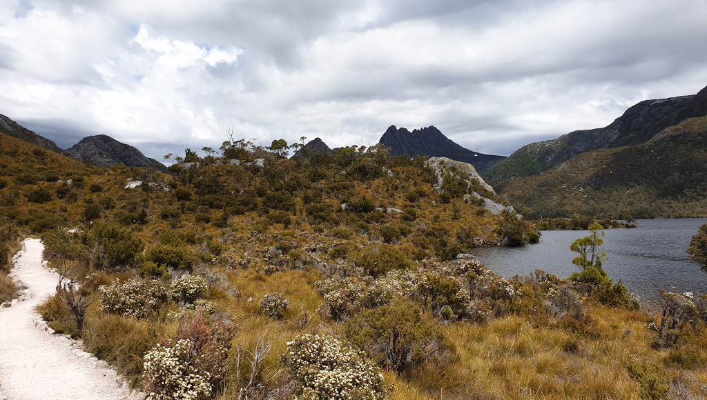 이 호수 둘레를 시계방향으로 한 바퀴 도는 것이 Dove Lake Circuit이다.