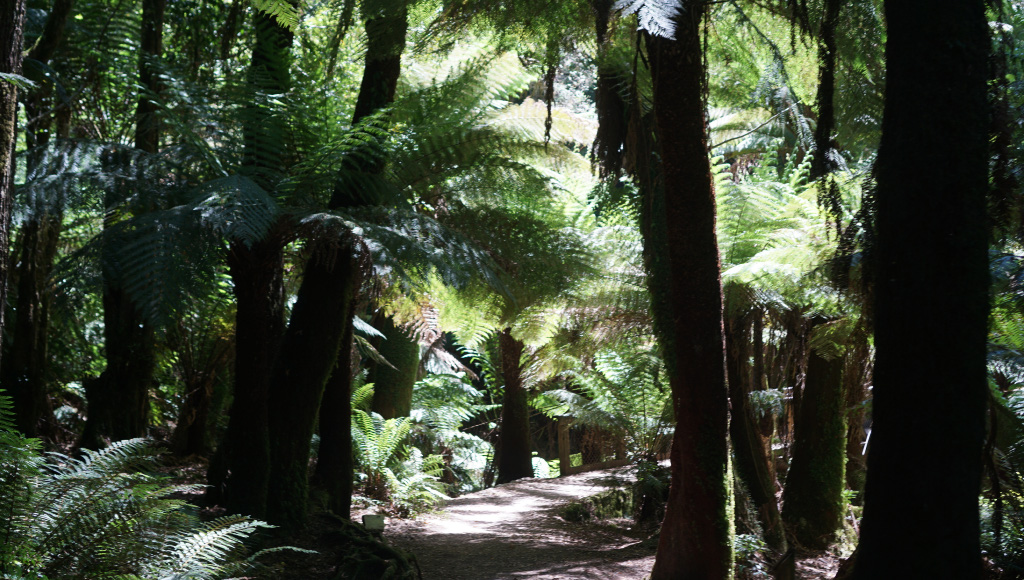 이 입구를 통과하면 시원하고 그늘진 열대우림의 산책로가 펼쳐진다.