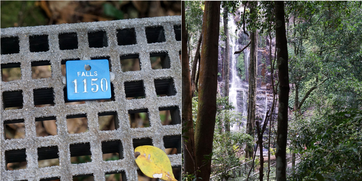 폴스 워크에는 바닥에 50m 간격으로 거리를 나타내는 표식이 있었다. 이 작은 파란 네모가 포기하고 싶은 마음을 다잡아 주었다. 1150! 마지막 숫자 앞에 바로 폭포가 있다. 웅장하진 않았지만 가파른 길의 목적지이자 보상 같은 느낌이라 발견 즉시 탄성이 나왔다.